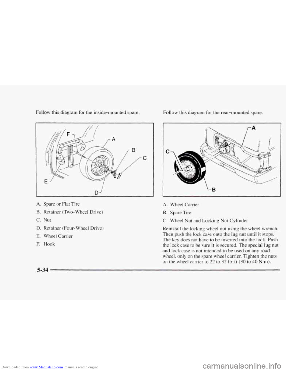 Downloaded from www.Manualslib.com manuals search engine Follow this diagram for the inside-mounted spare. Follow this diagram for the rear-mounted spare.