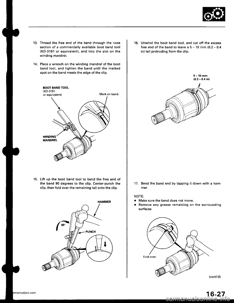 10. Set the double loop band onto the boot with theband end toward the front of the vehicle,