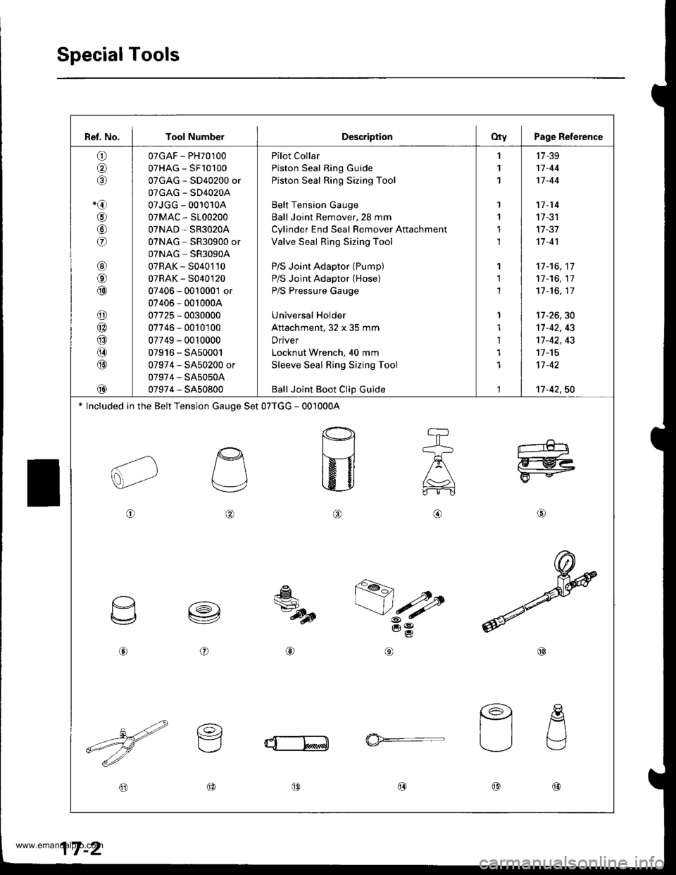 Pump Belt Inspection andAdjustment, pag€ t7-14Pump Pressure Check, page 17-16 ot 17-1jReplacemont, page 17-24Disassembly, pa96 17,25Inspection, page 17-26Reassembly. page17-28