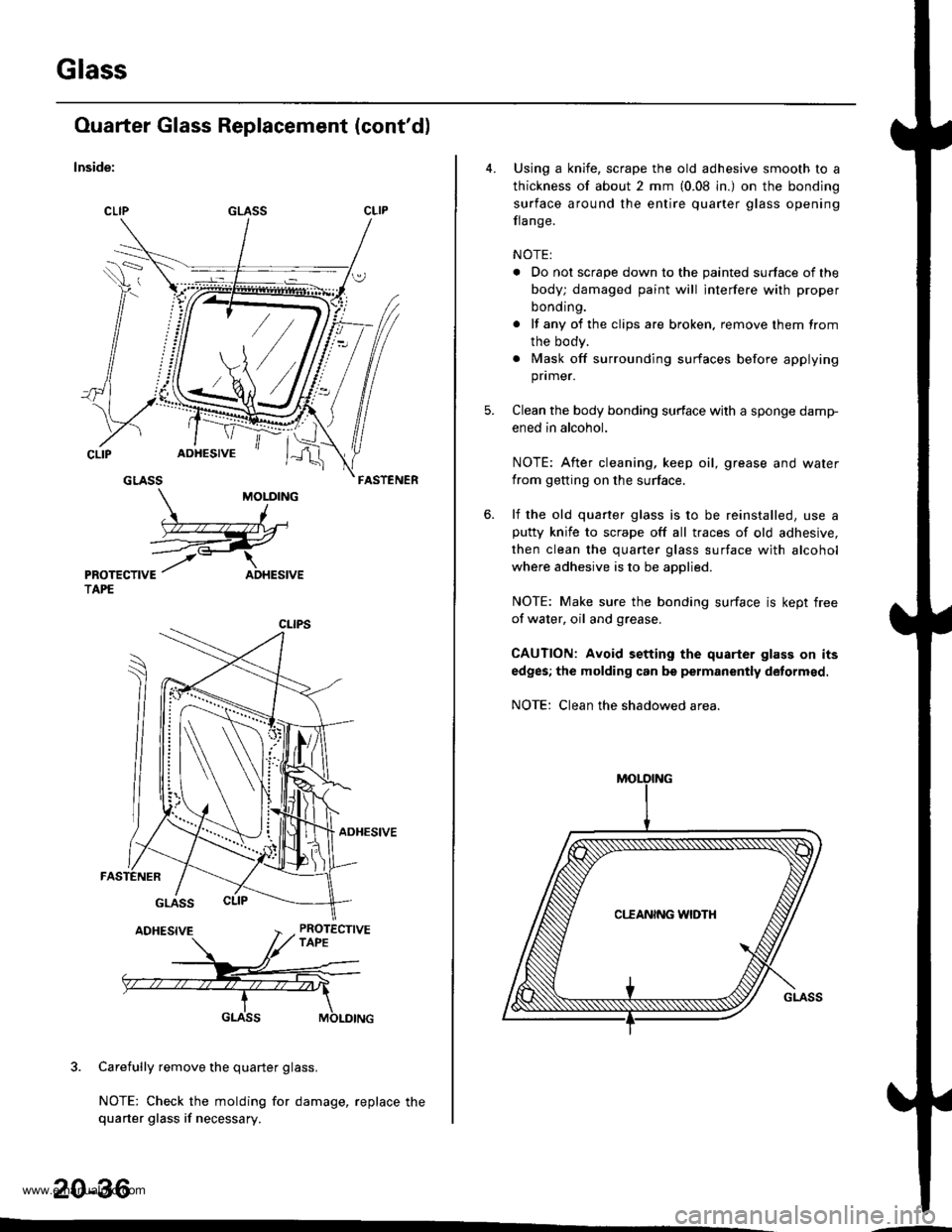NOTEj Check the molding for damage, replace thequa.ter glass if necessary.