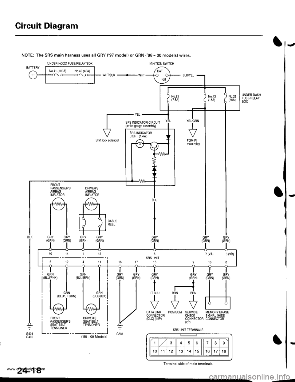 NOTE: The SRS main harness uses all GRY(97 model) or GRN (98 - 00 models) wires.