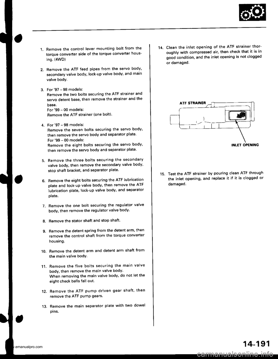 Remove the ATF feed pipes from the servo body,