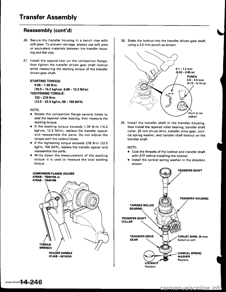 bench vise. Tighten the transfer shaft locknut. {The