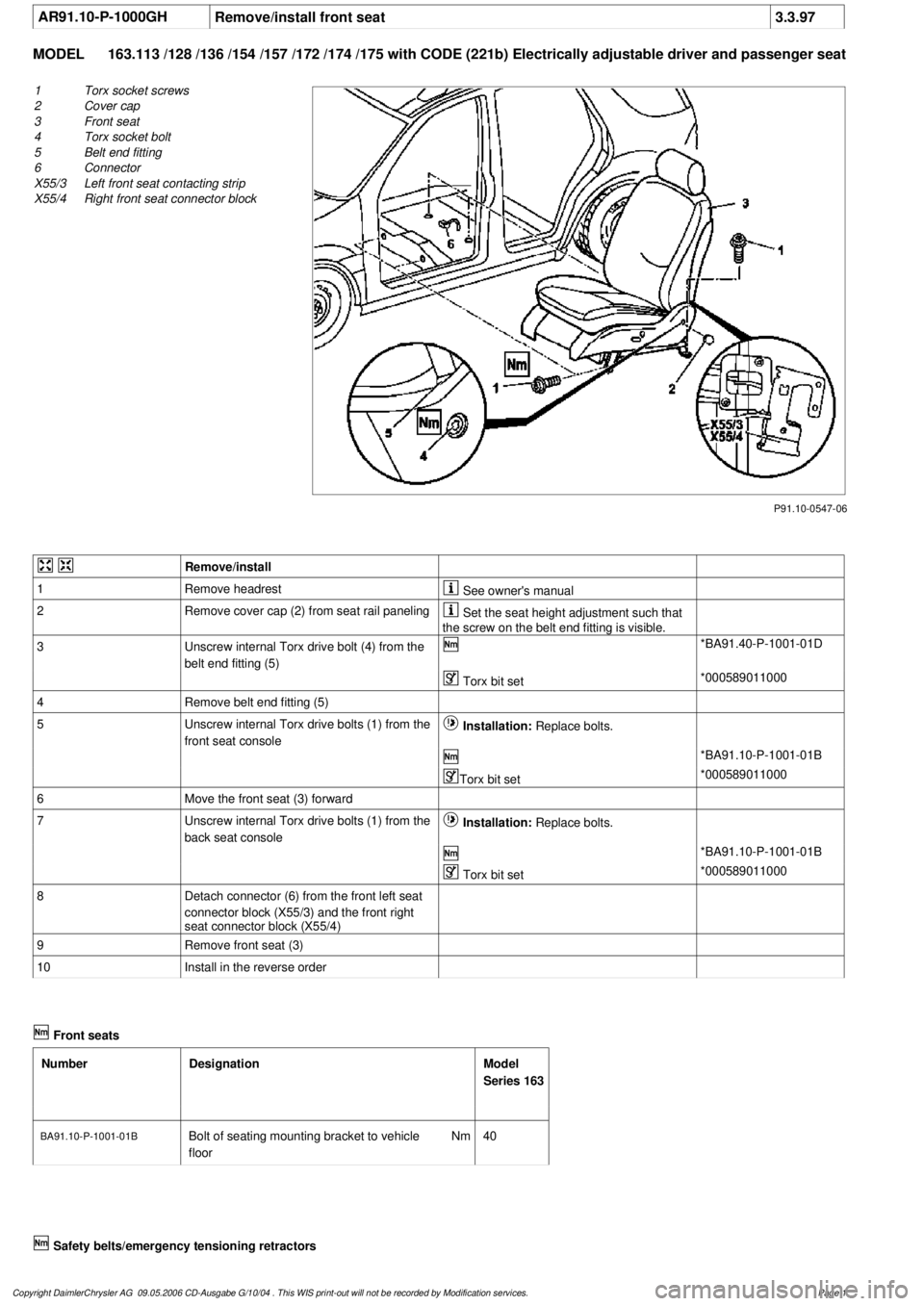 Copyright DaimlerChrysler AG 14.06.2006 CD-Ausgabe G/10/04 . This WIS print-out will not be recorde