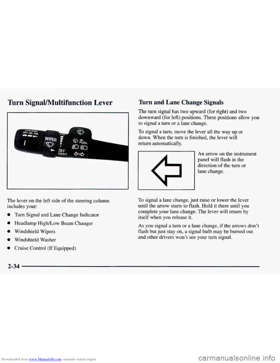 Downloaded from www.Manualslib.com manuals search engine Turn SignaVMultifunction Lever