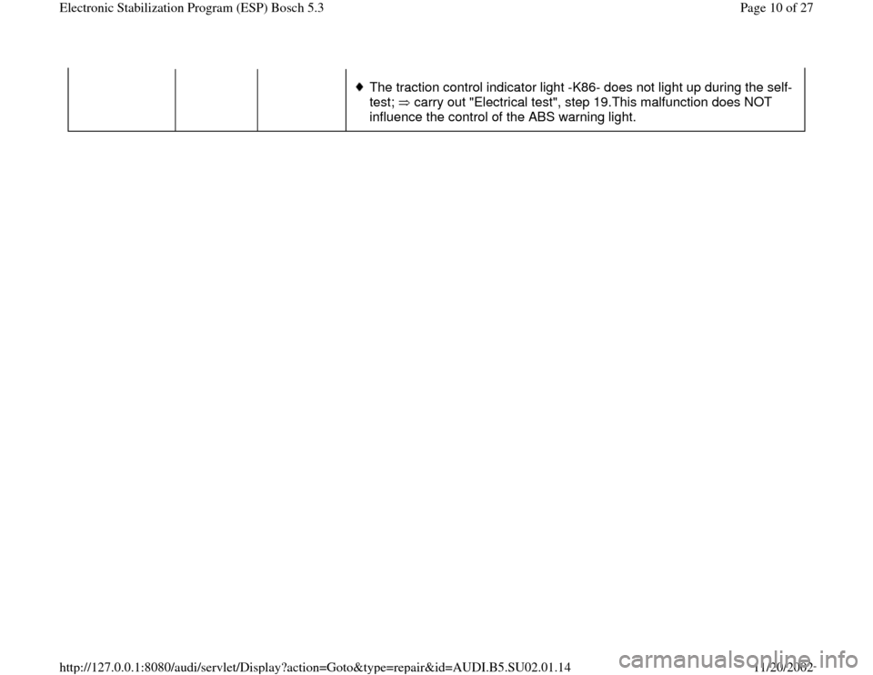 test and then go out. The possible causes are as follows: The voltage supply for the ABS control module -J104- is between