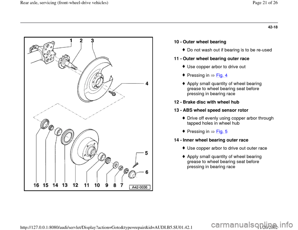 Outer wheel bearing outer race Use copper arbor to drive outPressing in Fig. 4Apply small quantity of wheel bearing