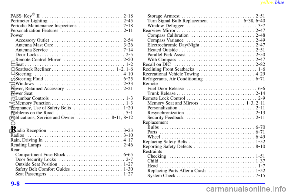 OLDSMOBILE AURORA 1999  Owners Manual yellowblue