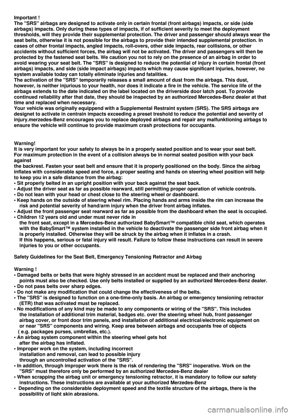 injury.merzedes-Benz encourages you to replace deploy ed airbags and repair any malfunktioning airbags to