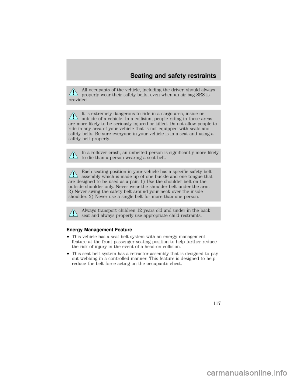 safety belts. Be sure everyone in your vehicle is in a seat and using a