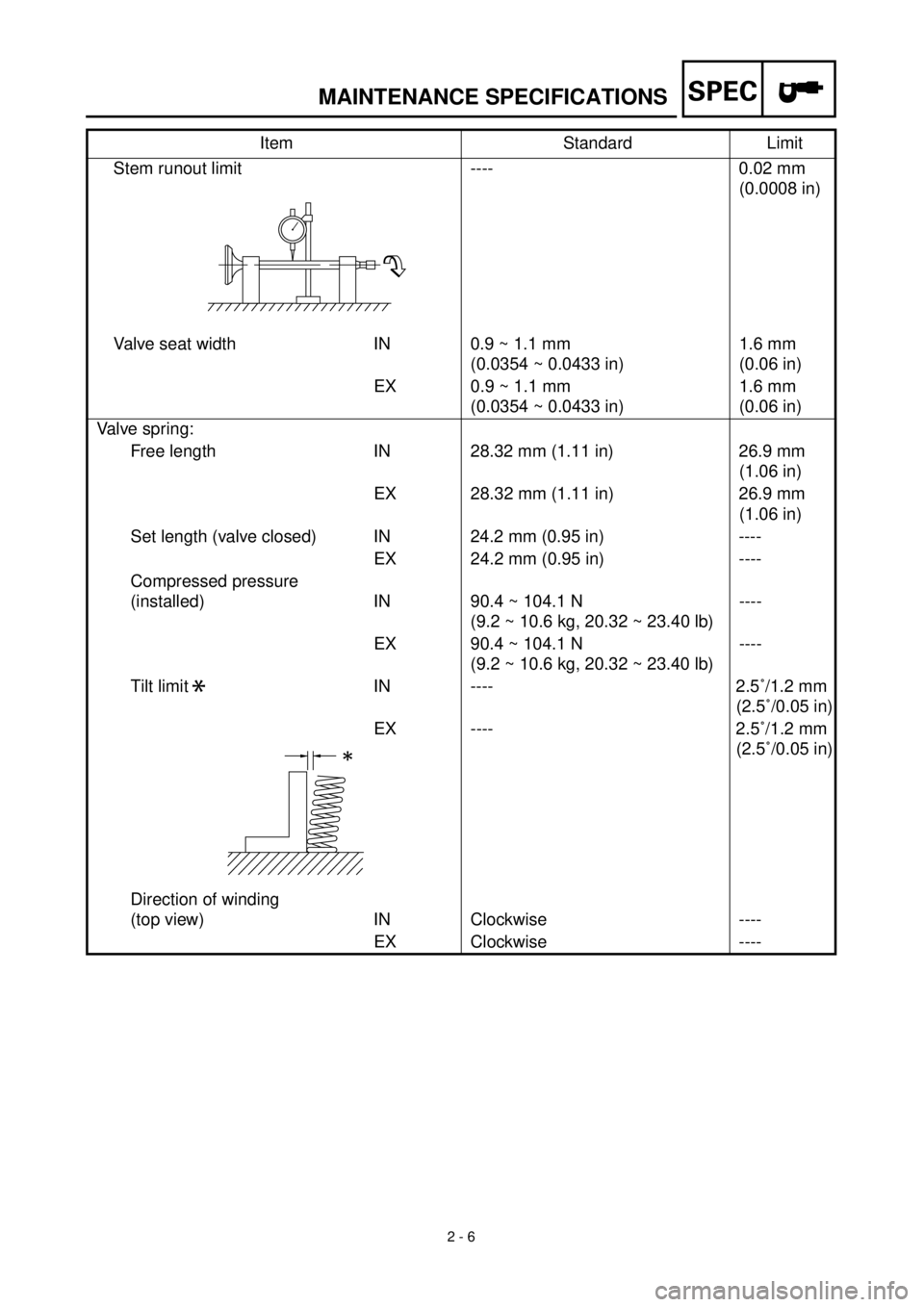 Stem-to-guide clearance IN 0.010 ~ 0.037 mm