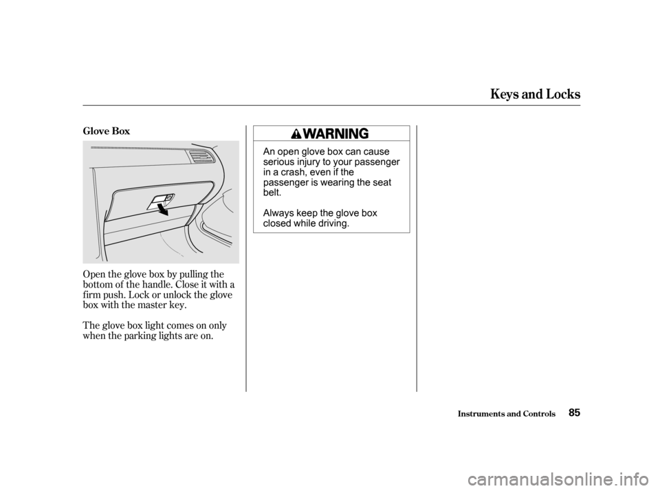 when the parking lights are on. Open the glove box by pulling the