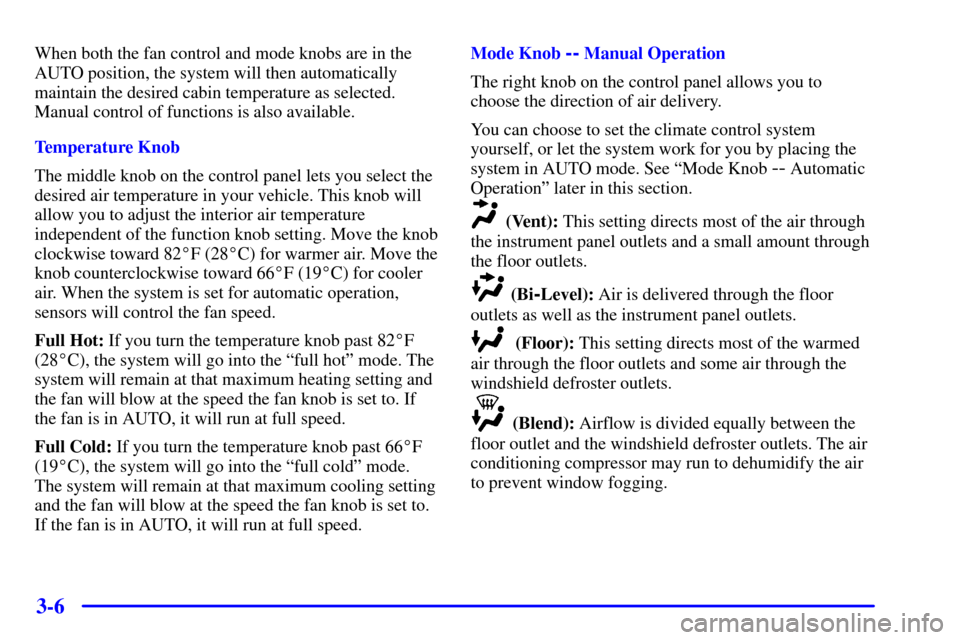 If the fan is in AUTO, it will run at full speed.Mode Knob -- Manual Operation