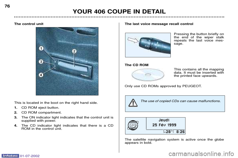 Only use CD ROMs approved by PEUGEOT. The satellite navigation system is active once the globe appears in bold.