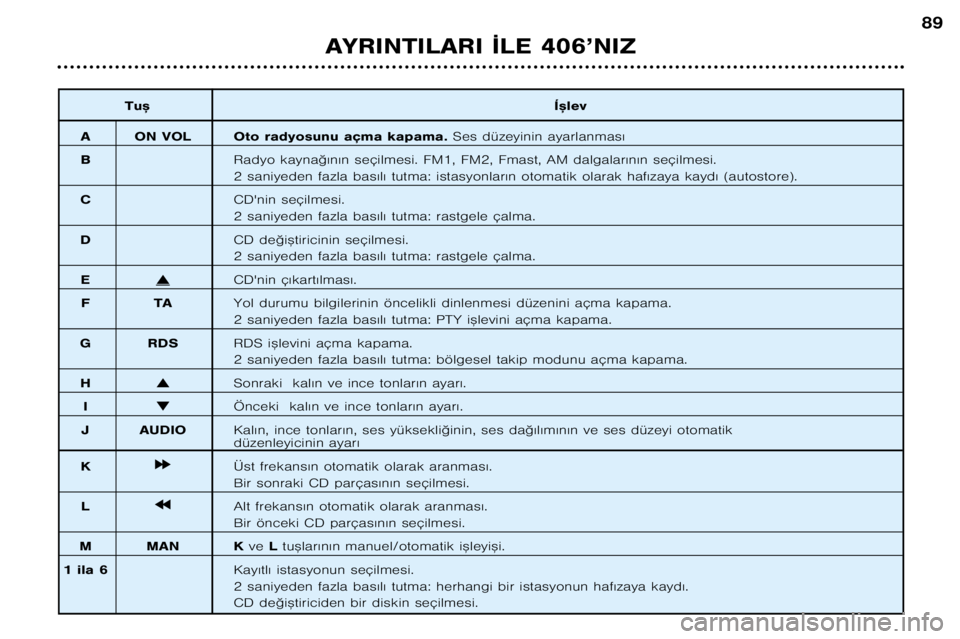 2002 Peugeot 406 Kullanım Kılavuzu (in Turkish)
