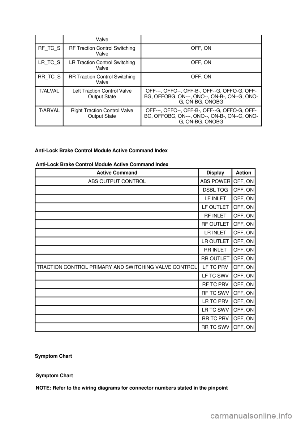 Symptom Chart  ABSRF_I  RF ABS Inlet Valve  OFF---, OFFO--, OFF