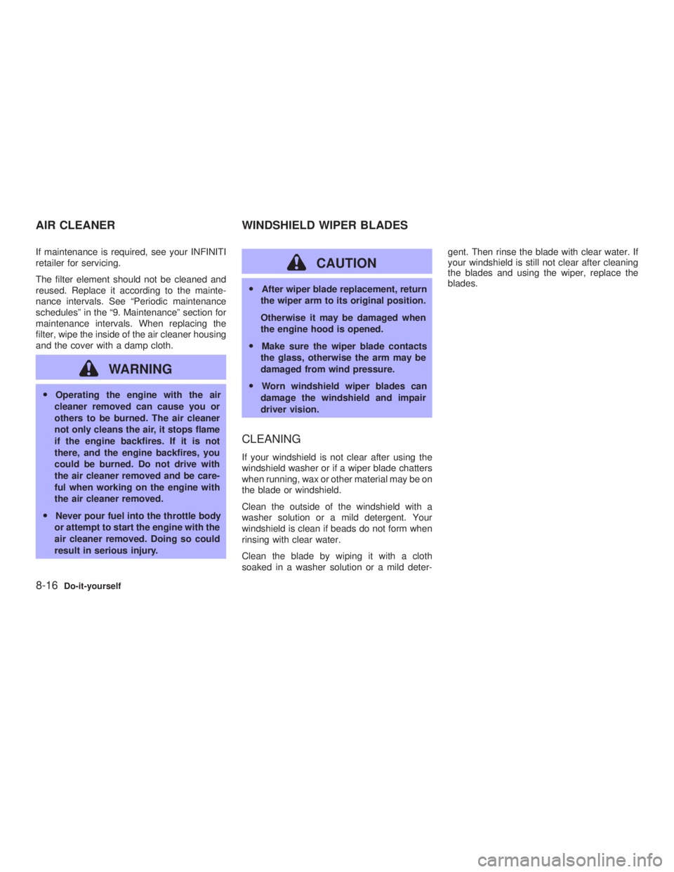 If maintenance is required, see your INFINITI