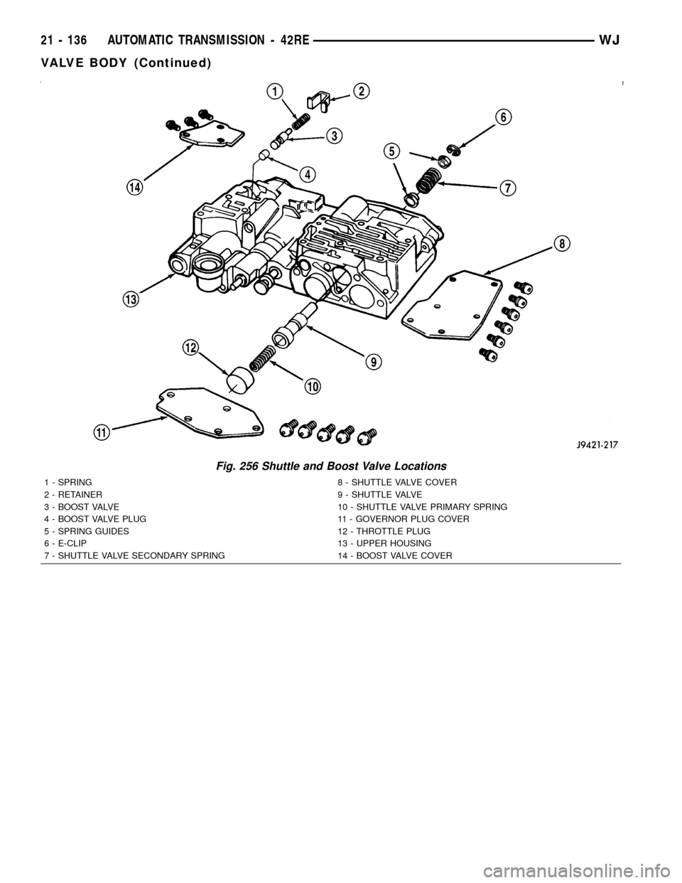 JEEP GRAND CHEROKEE 2003 WJ / 2.G Workshop Manual Fig. 256 Shuttle and Boost Valve Locations