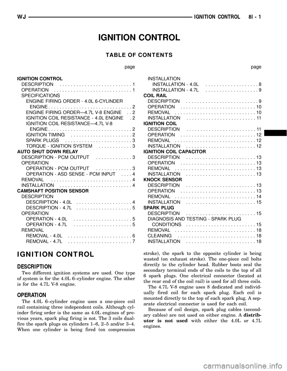 8I - 2 IGNITION CONTROLWJ