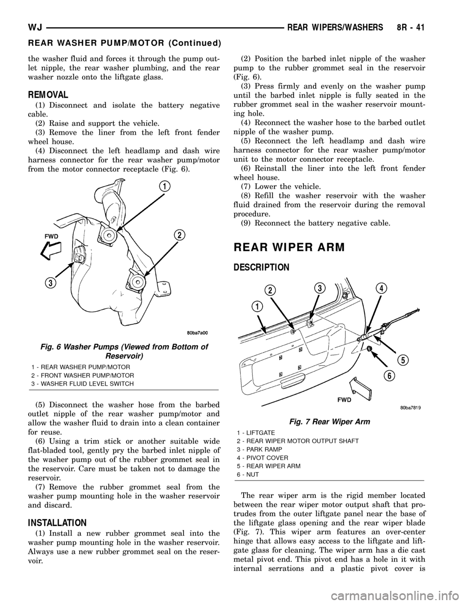 JEEP GRAND CHEROKEE 2003 WJ / 2.G Workshop Manual the washer fluid and forces it through the pump out-
