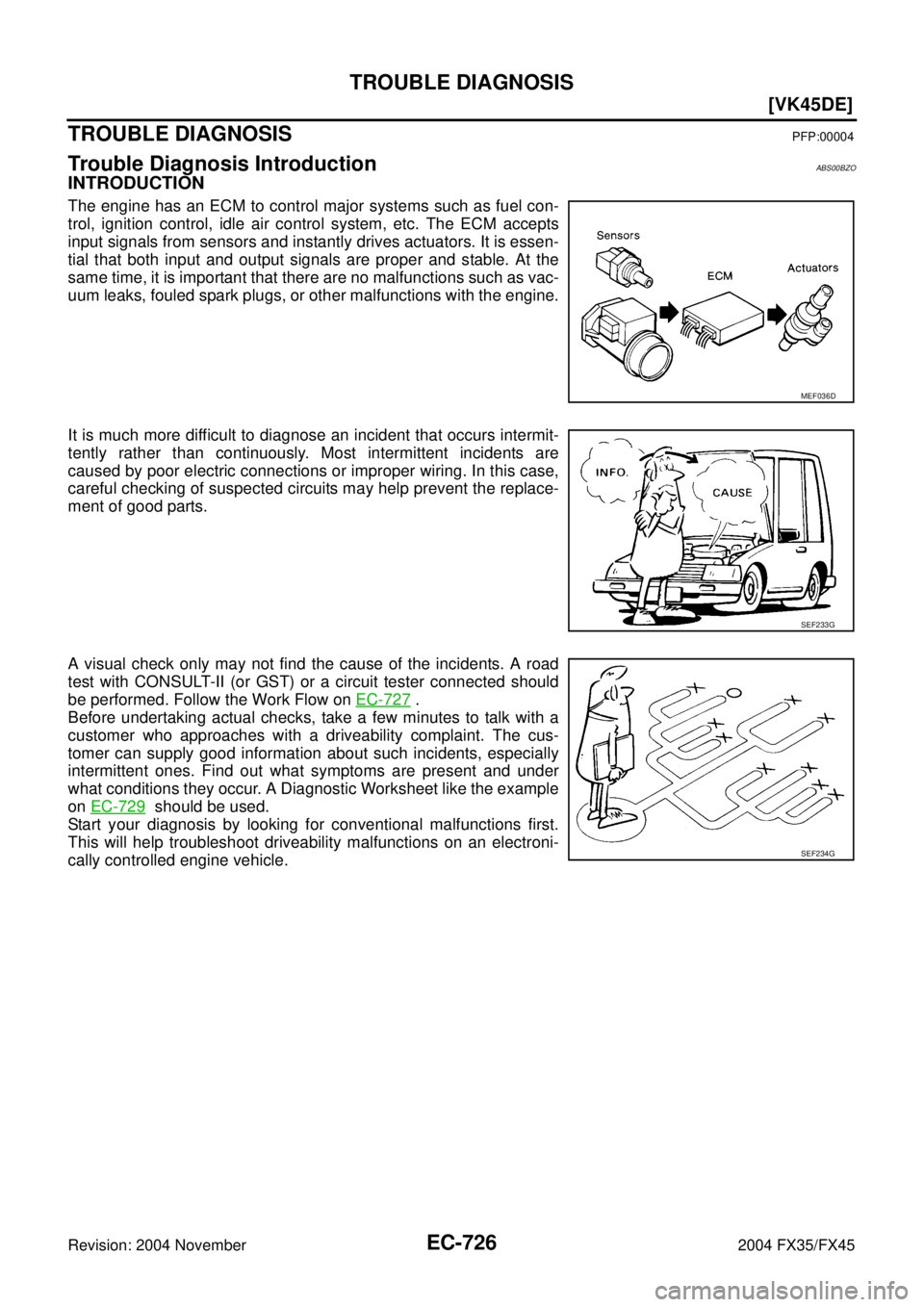 The engine has an ECM t INFINITI FX35 2004 Service Manual TROUBLE DIAGNOSIS
