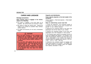 affecting vehicle handling, hints on vehicle safety and safe