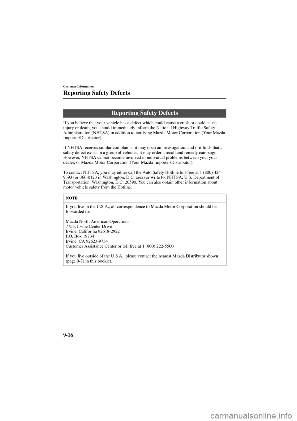 MAZDA MODEL 6 2004  Owners Manual (in English) 9-16