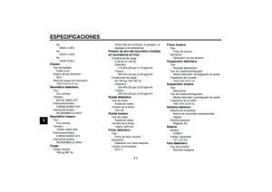 más actual disponible en el momento de imprimirse, pueden existir pequeñas discrepancias entre su motocicleta y este manual. Sinecesita cualquier aclaración relativa a este manual, consulte a su concesionario Yamaha.ADVERTENCIA