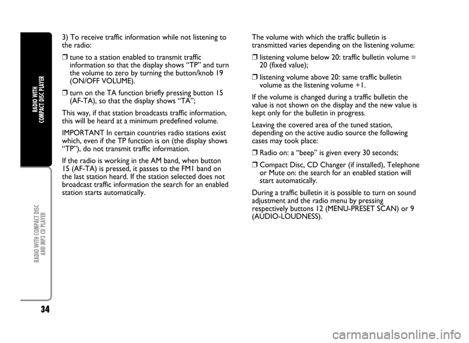 If the TA function is on (traffic information), the tuner