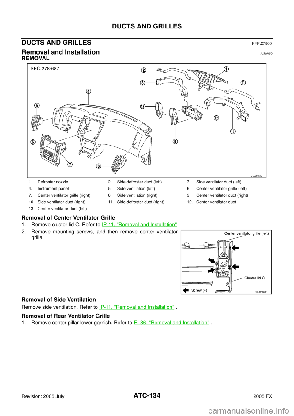 2. Remove foot duct (left). Refer to ATC-137, "