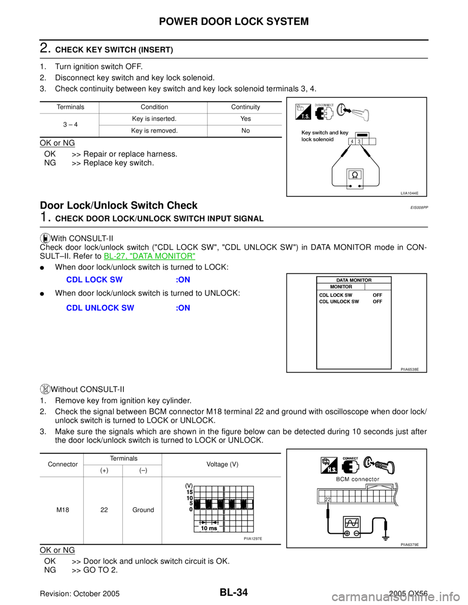 OK >> Replace door lock actuator. Refer to BL-134, "REAR DOOR LOCK" .