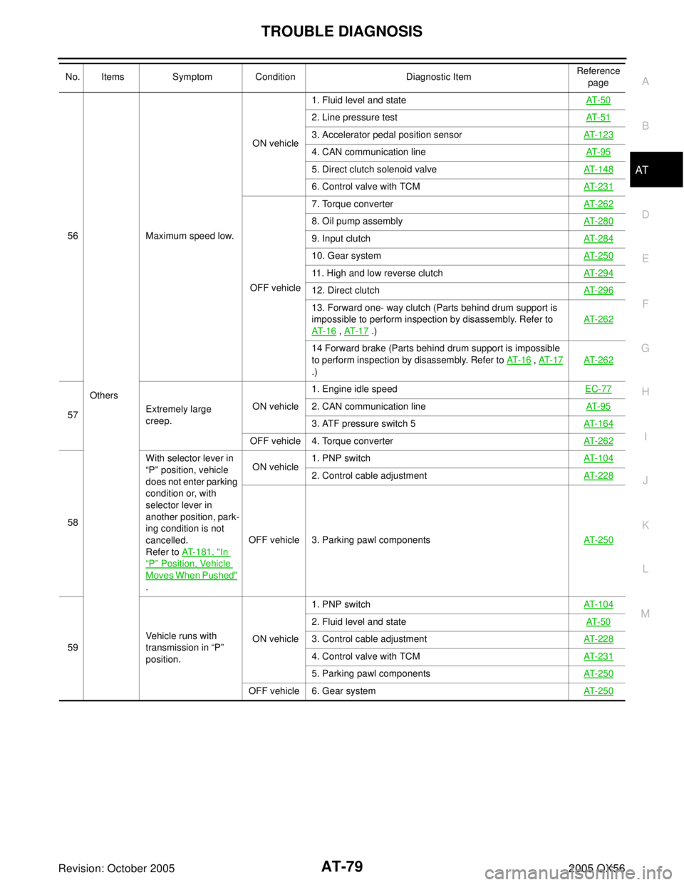 OthersMaximum speed low.ON vehicle1. Fluid level and stateAT- 5 0