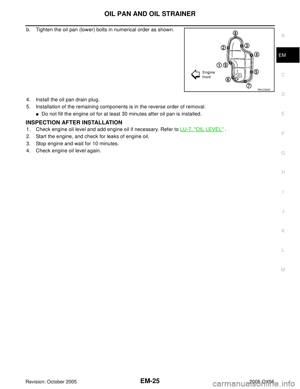 b. Tighten the oil pan (lower) bolts in numerical order as shown.