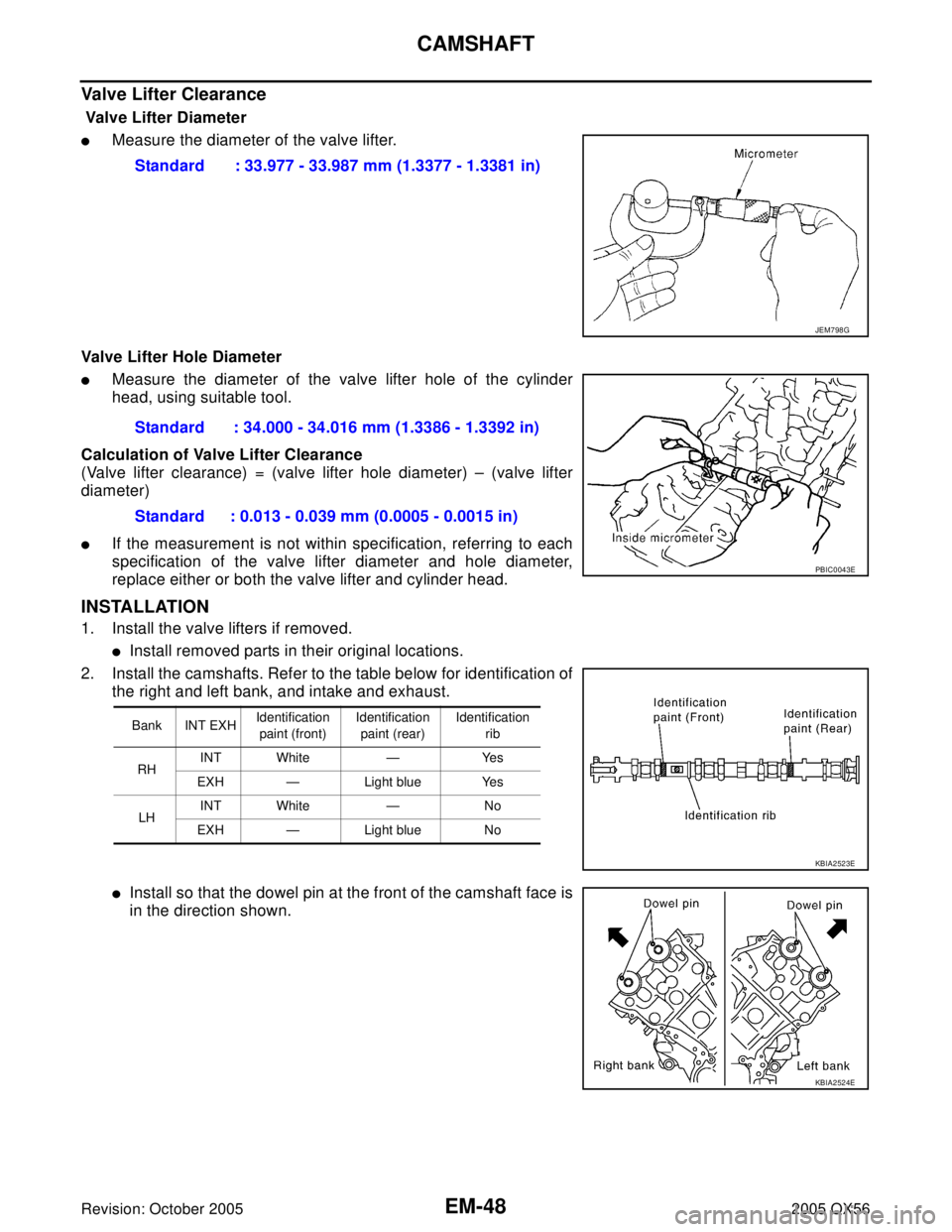 1. Remove the rocker cover (right bank) and (left bank). Refer to EM-33, "ROCKER COVER" .