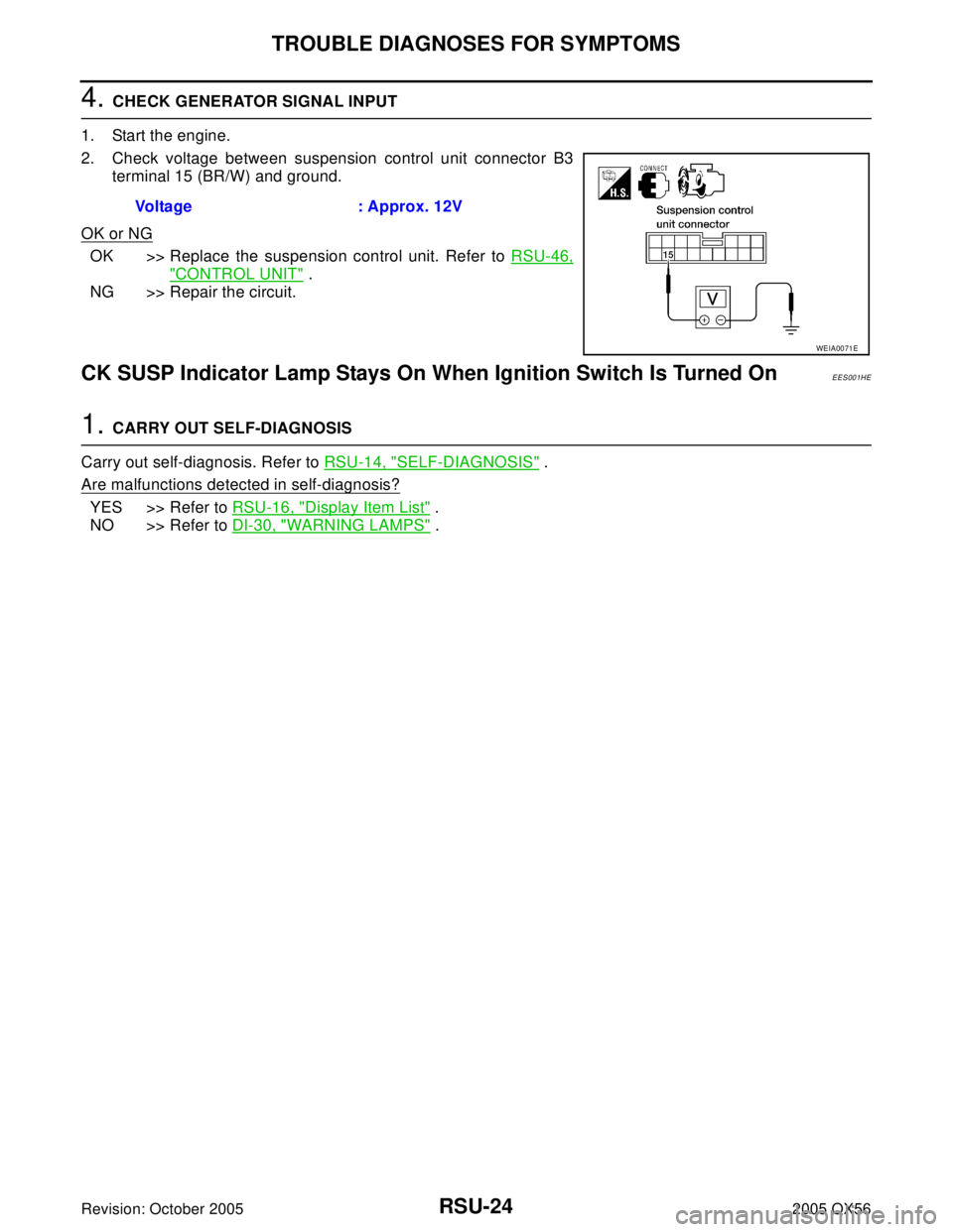 OK >> Replace the suspension control unit. Refer to RSU-46,