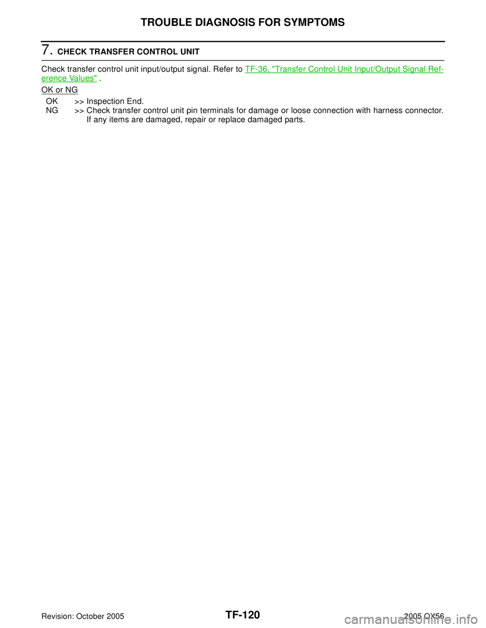 Check transfer control unit input/output signal. Refer to TF-36, "