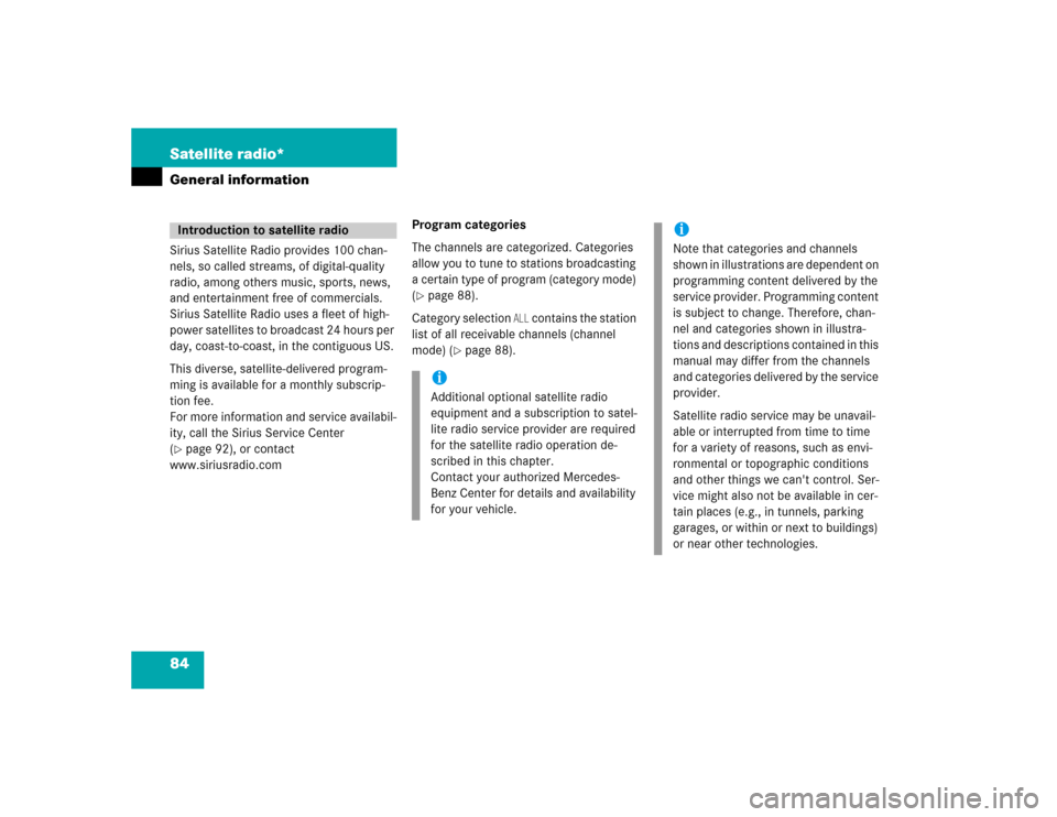 MERCEDES-BENZ SLK-Class 2005 R171 Comand Manual 84 Satellite radio*General informationSirius Satellite Radio provides 100 chan-