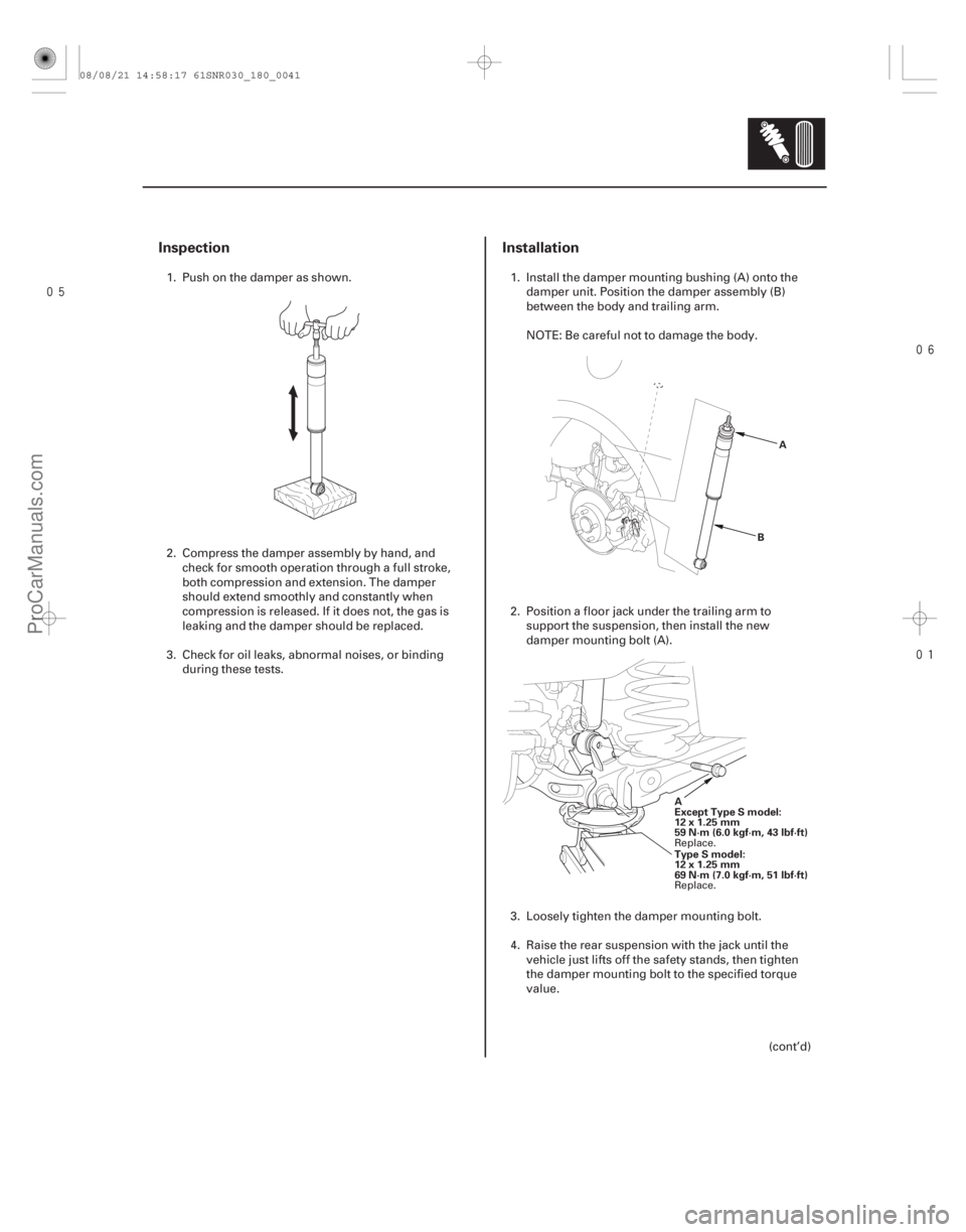 3. Check for oil leaks, abnormal noises, or binding during these tests. 1. Install the damper mounting bushing (A) onto the
