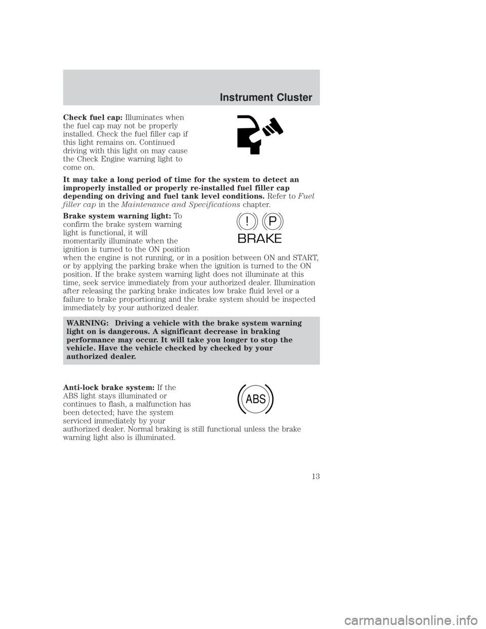 filler cap in theMaintenance and Specifications chapter.