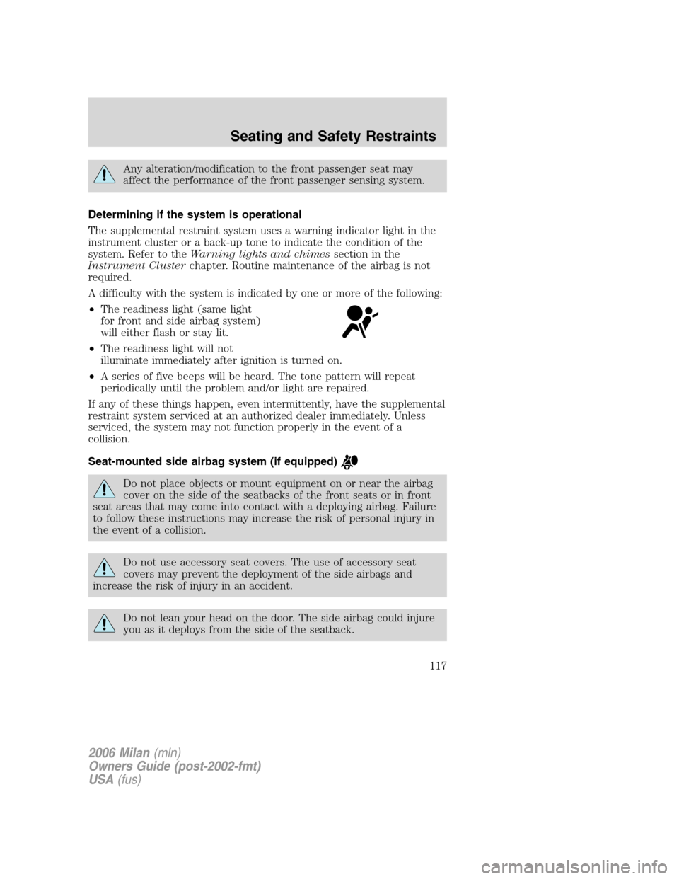 frontal airbag (may inflate), the indicator lamp will be unlit and stay