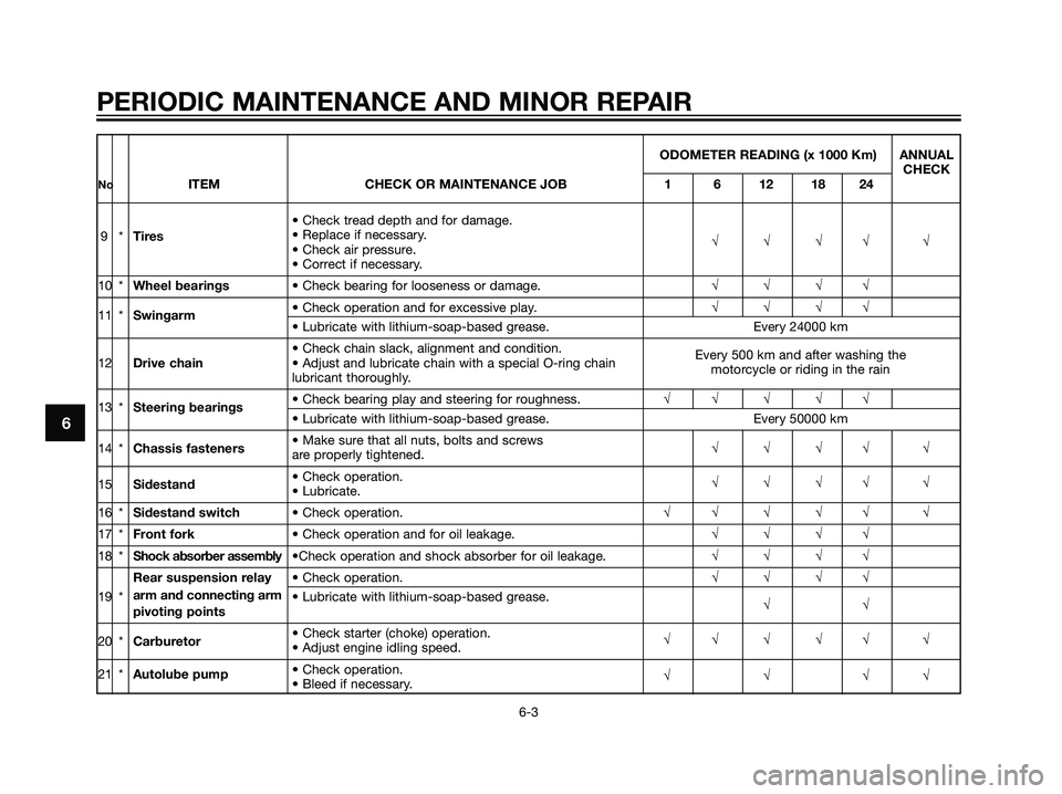 YAMAHA DT125R 2006  Owners Manual ODOMETER READING (x 1000 Km) ANNUAL