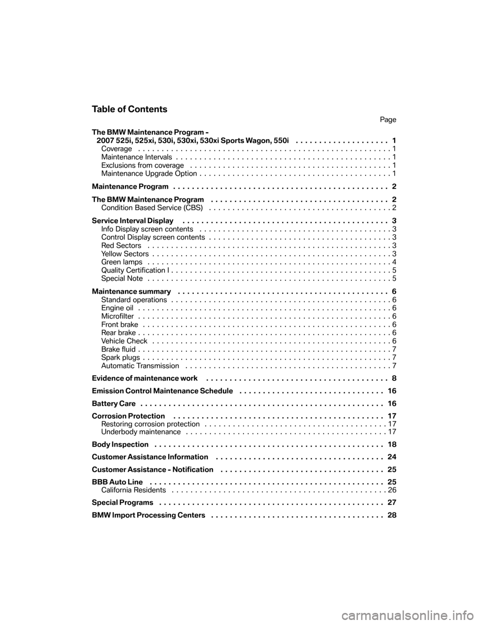 The BMW Maintenance Program - 2007 525i, 525xi, 530i, 530xi, 530xi Sports Wagon, 550i . . .................. 1