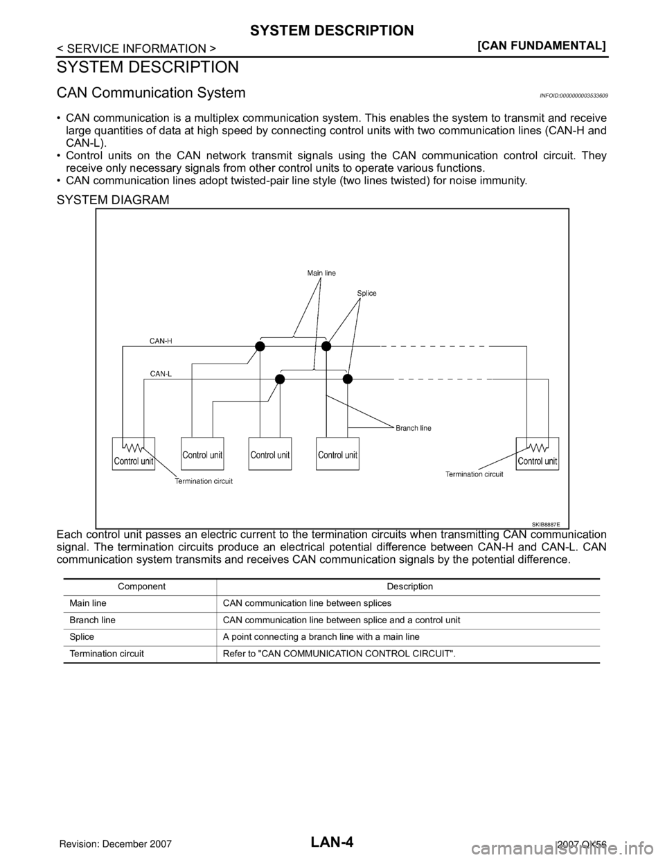 • CAN communication is a multiplex communication system. This ena INFINITI QX56 2007 Factory Service Manual LAN-4