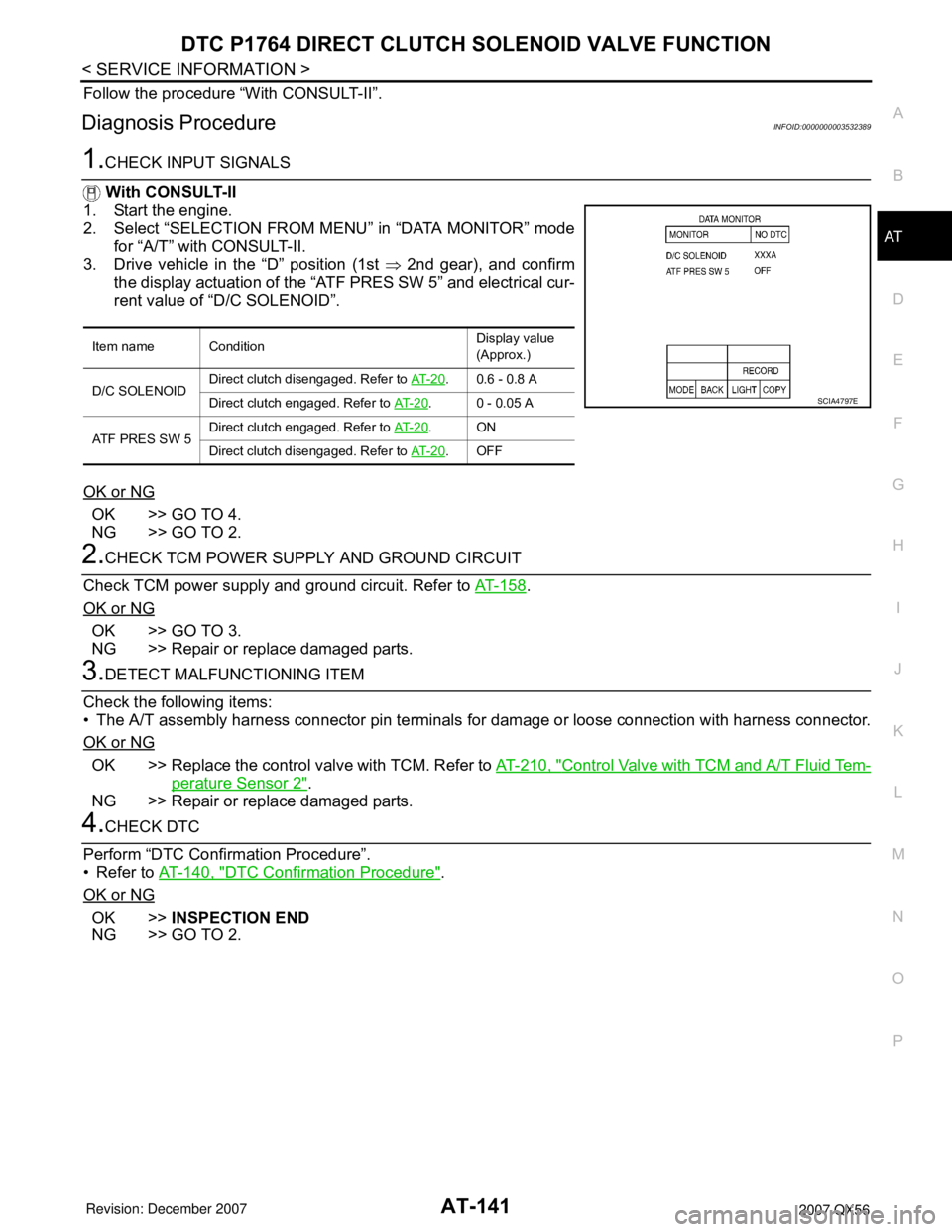II. If DTC (P1764) is detected, refer to AT-141, "