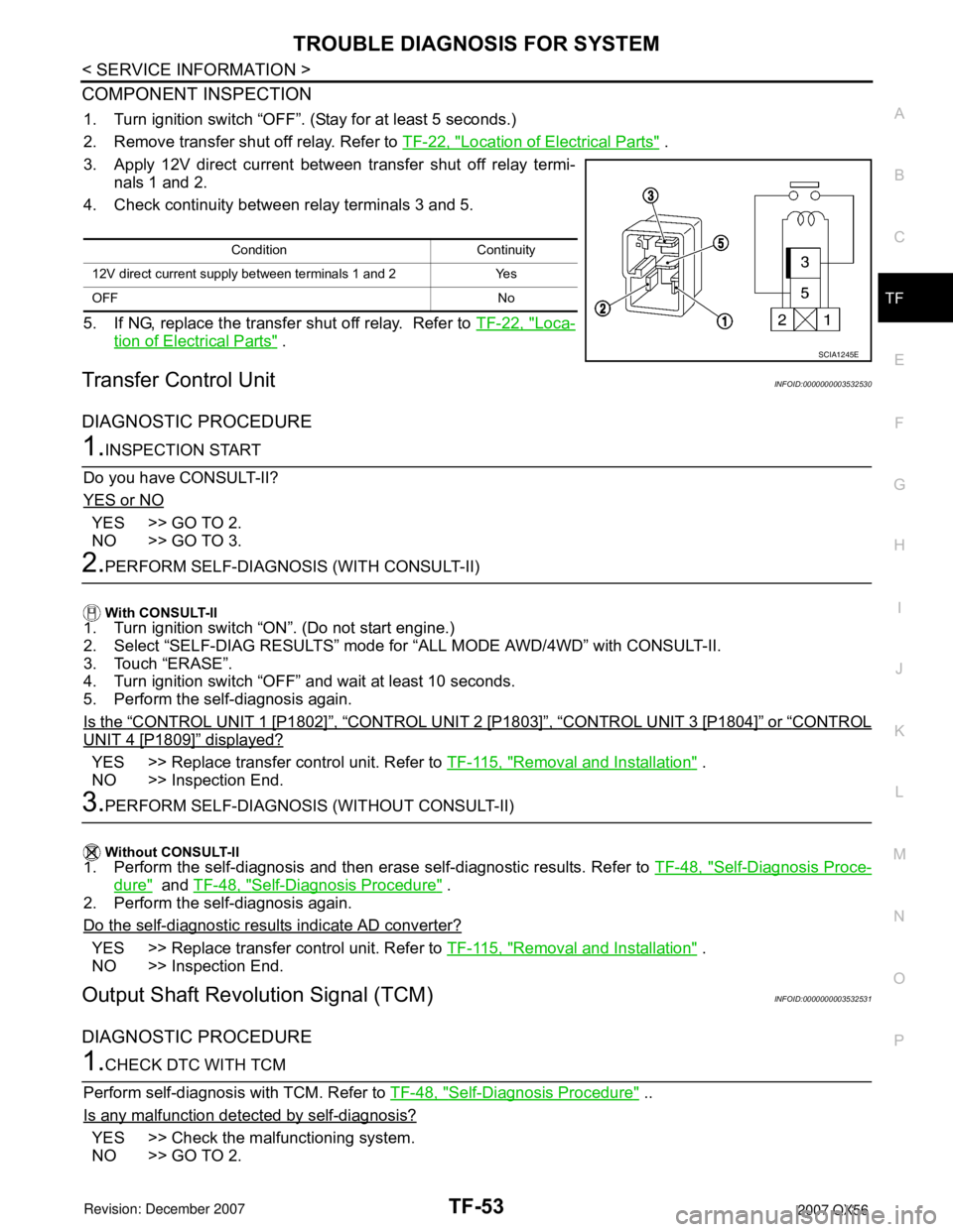 • Transfer shut off relay. Refer to "COMPONENT INSPECTION" .