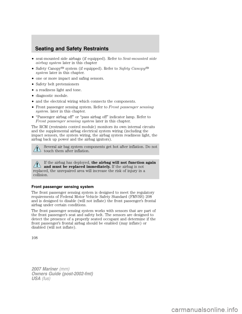 Mercury Mariner 2007  Owners Manuals •seat-mounted side airbags (if equipped). Refer toSeat-mounted side