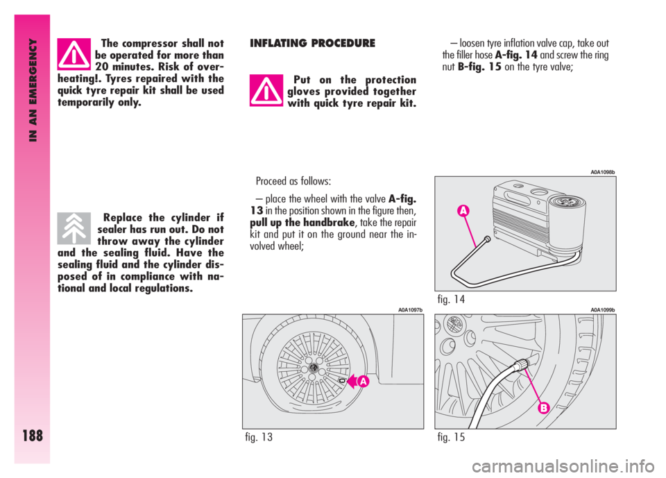 temporarily only.INFLATING PROCEDURE– loosen tyre inflation valve cap, take out