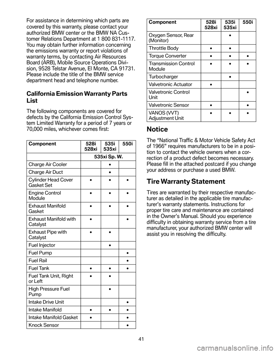 repaired or replaced by BMW NA. This is your