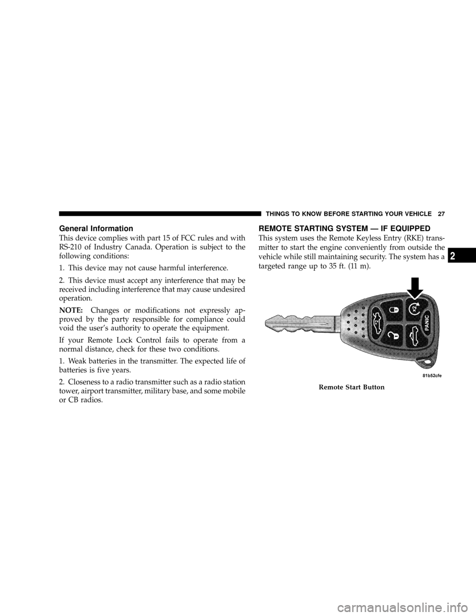 REMOTE STARTING SYSTEM Ð IF EQUIPPED