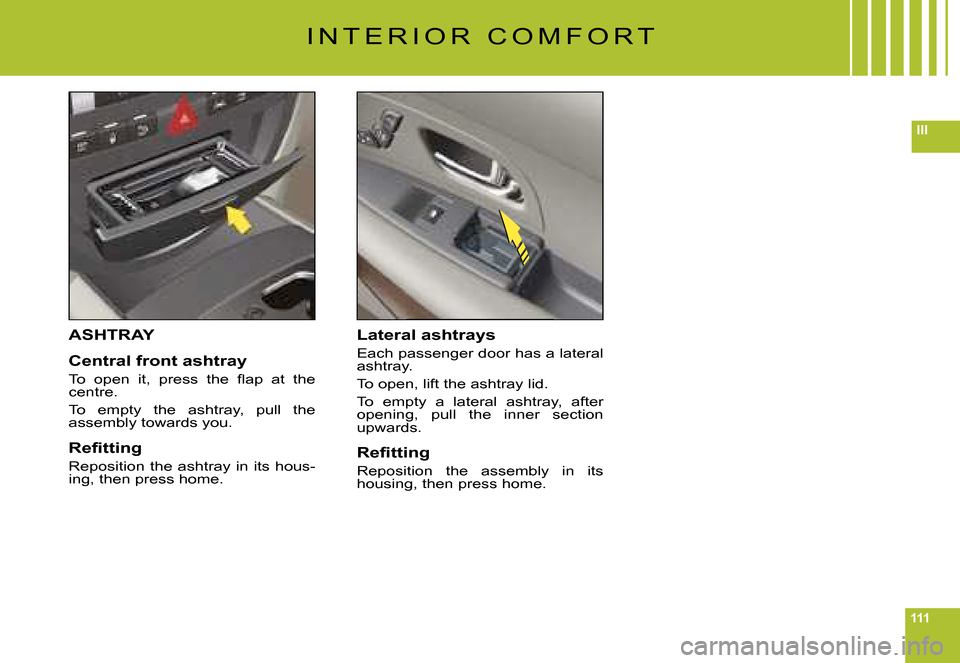 To open, press on the chrome of the central oddments tray.